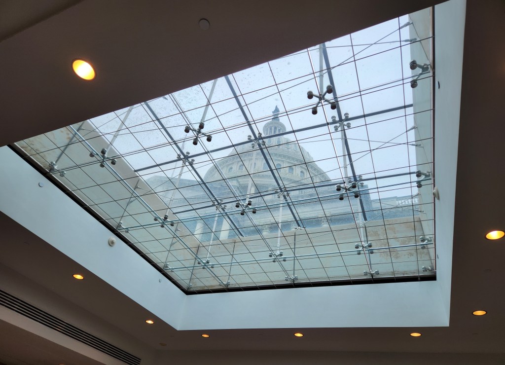 A view of the Capitol Dome through one of the two skylights on the East Front Plaza of the Capitol.