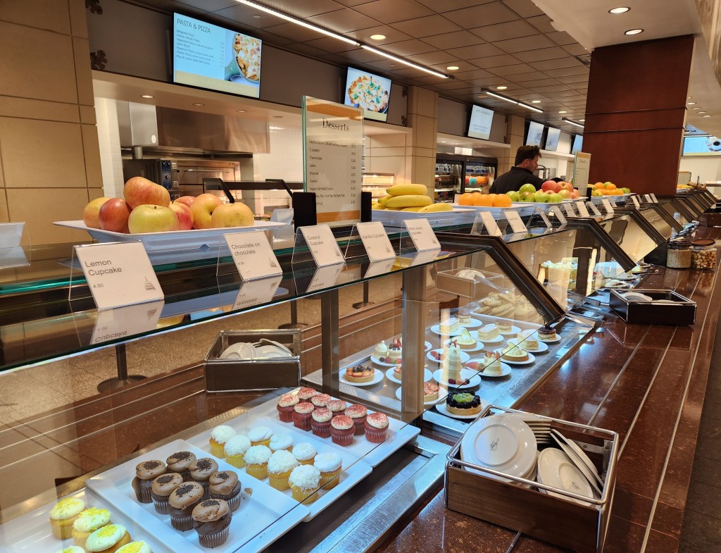 An image from the Café, open from 8:30am until 4:00pm, and featuring soups, salads, specialty entrees, pizza, sandwiches, desserts and beverages.