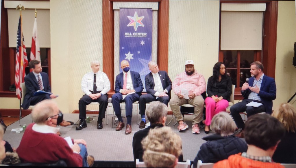 Allen brought in MPD and the Departments of Transportation and Health to the alley complex and it looks like a greater MPD presence, more lights from the DDOT lighting team and increased rodent control are in the offing. Maybe more security cameras. That’s MPD 1st District Commander Colin Hall with Allen.