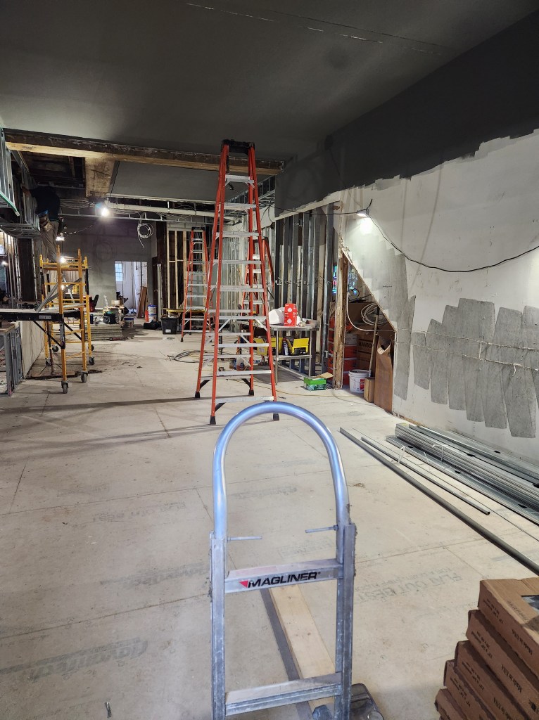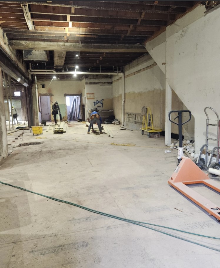 Here are a couple of images from the ongoing interior work on the library – sanding down the façade surround of the Library’s fireplace. And a here’s a link to the SE Library Modernization Construction Updates https://bit.ly/4asbJi9