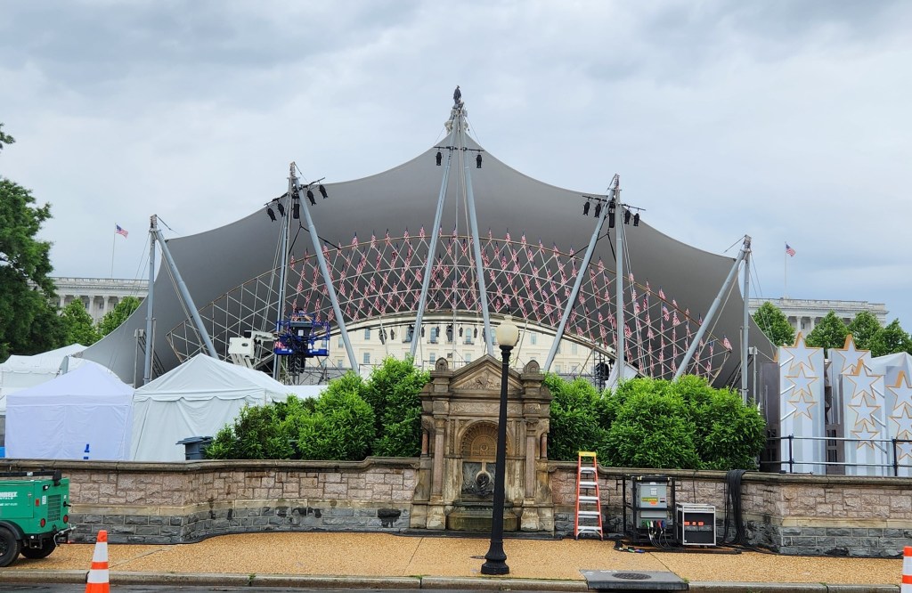 Here’s a capture from last mid-week of crews setting up the fabric concert hall on the West Front of the U.S. Capitol for the Memorial Day Concert.