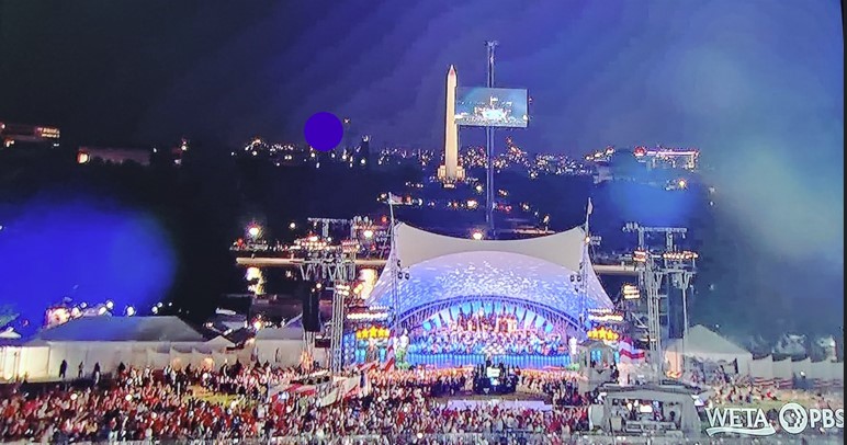 And an image from the concert on Sunday night in honor of those who paid the ultimate sacrifice in service of their country. The screen elevated so it appears next to the Washington Monument allows the audience on the West Front to see performers facing the stage, showing the Capitol in the background. Image courtesy of WETA/PBS