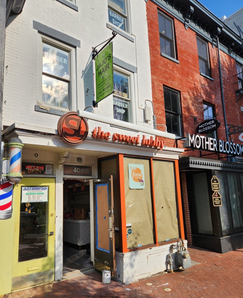 District Doughnut at 749 8th Street, Barracks Row, has temporarily closed all three of its District Outlets (Barracks Row, TheWharf, and Union Market). The sign on the door says,