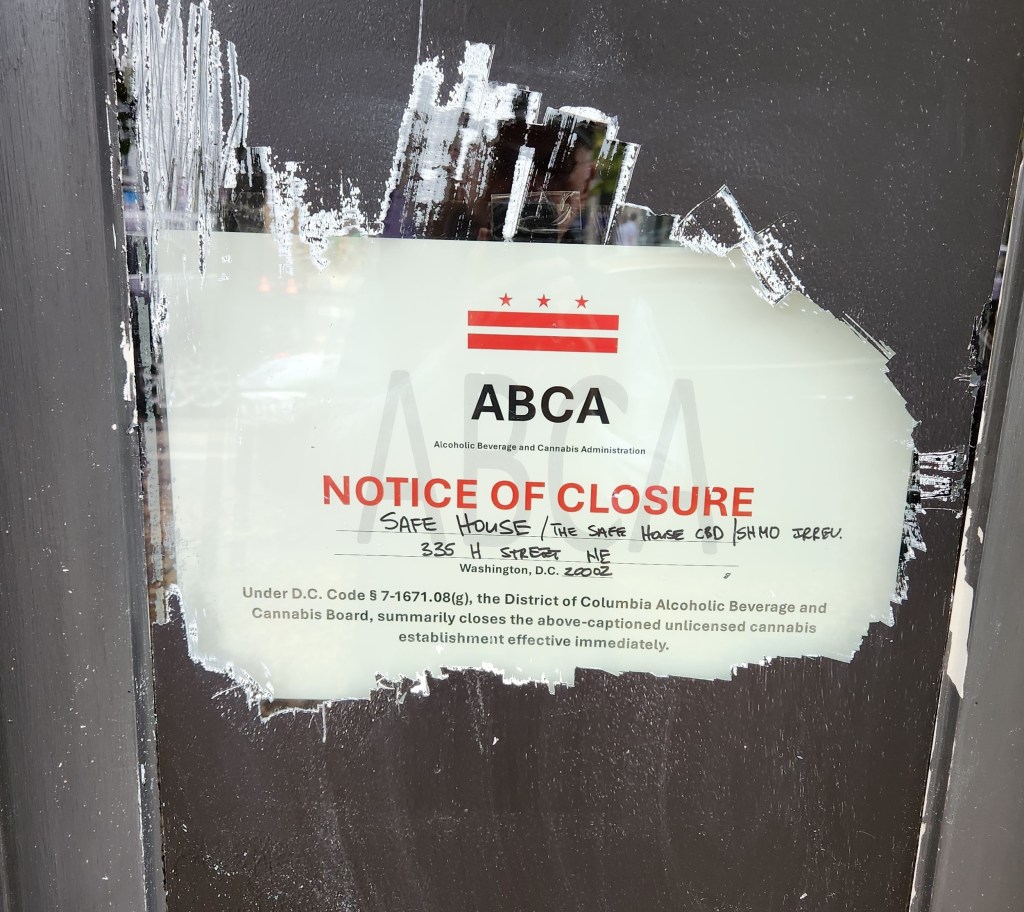 At Last. Last week on October 30, the Alcoholic Beverage and Cannabis Administration’s (ABCA) Enforcement Division, accompanied by MPD, served Closure Orders to an illegal cannabis business: Safe House, located at 335 H Street, NE. Washington DC. The Closure Order was in response to the continued operation as unlicensed cannabis retailers in violation of a Cease and Desist Order. Due to the businesses posing a credible and imminent danger to public health and safety, ABCA shuttered the businesses, including padlocking (changing the locks on) the doors.