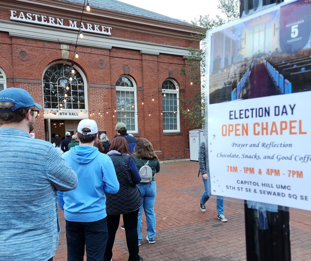 Here’s the Eastern Market on polling location on Tuesday morning. Some churches opened their doors throughout the day. The Board of Elections unofficial tally of votes has Ward 6 leading all 8 wards in the total number of ballots cast.