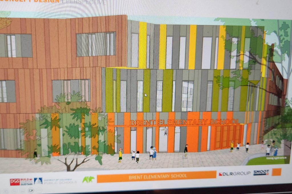 At last Tuesday night’s ANC6B meeting, Erika Lehman from the DLR Group design team presented the plan and architectural renderings for the Brent School modernization project. The school is located at 3rd and North Carolina SE. The raze-and-construction timeline anticipates that the new building will be ready to open in the fall of 2007.