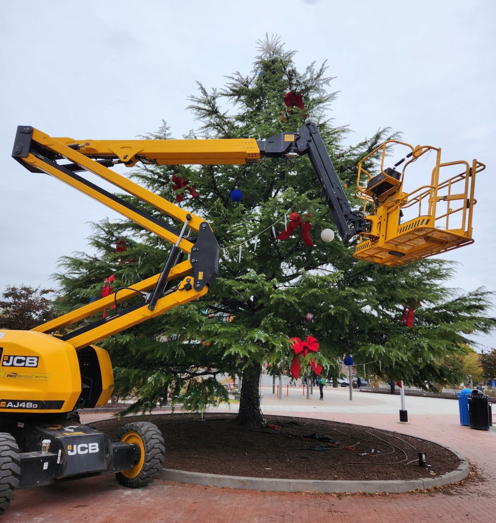 Last Thursday, landscape contractors were decorating “Big George” on Eastern Market Metro Plaza for the Holiday Season. The annual lighting of the tree and the celebration of the coming holiday season will be on Saturday, November 23, at 5:30pm. More on this later.