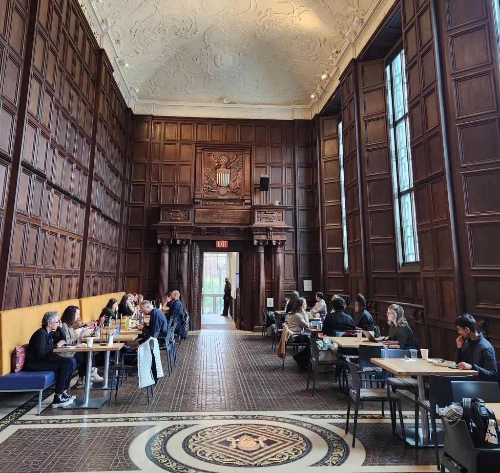 Quill & Crumb is located in the Folger’s historic Great Hall. Seating will be offered in three zones across the Great Hall, including tables and banquettes for leisurely lunches, a middle area with high-top tables for enjoying coffee or a quick snack, and a lounge area catering to socializing over drinks or a light bite before a performance in Folger Theatre. For more on the Quill and Crumb, go here: https://www.folger.edu/visit/folger-cafe-quill-crumb/