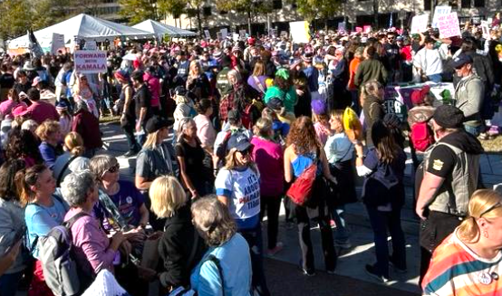 Womens’ March. Saturday afternoon,, thousands of people attended the “We Won’t Go Back!” Women’s March event which gathered at Freedom Plaza before marching to the Ellipse. They rallied to express support for VP Kamala Harris, abortion justice, and other progressive causes. Photo: Peter Hernandez