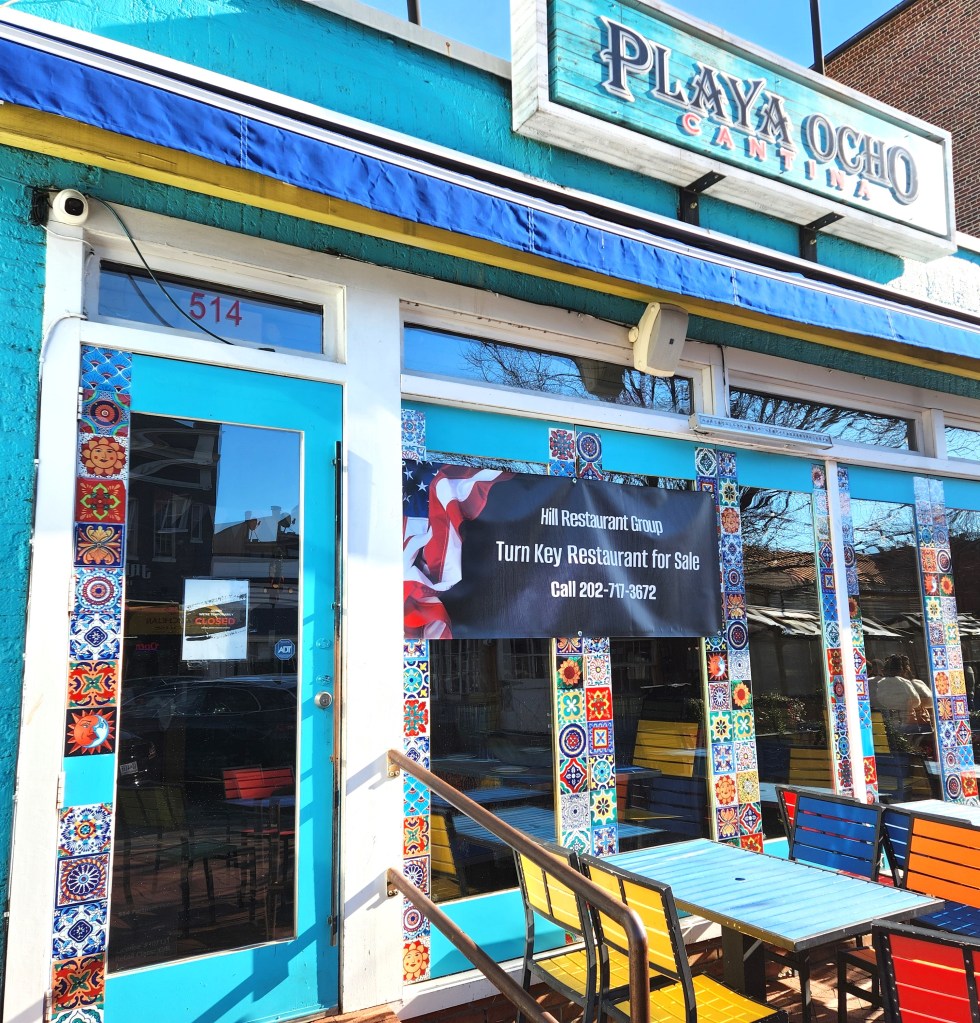 And on Barracks Row, Hill Restaurant Group announced that its Playa Ocho Cantina on Barracks Row was up for sale. The sign says its temporarily closed for renovations.