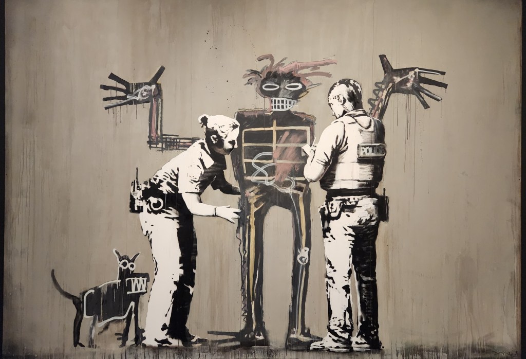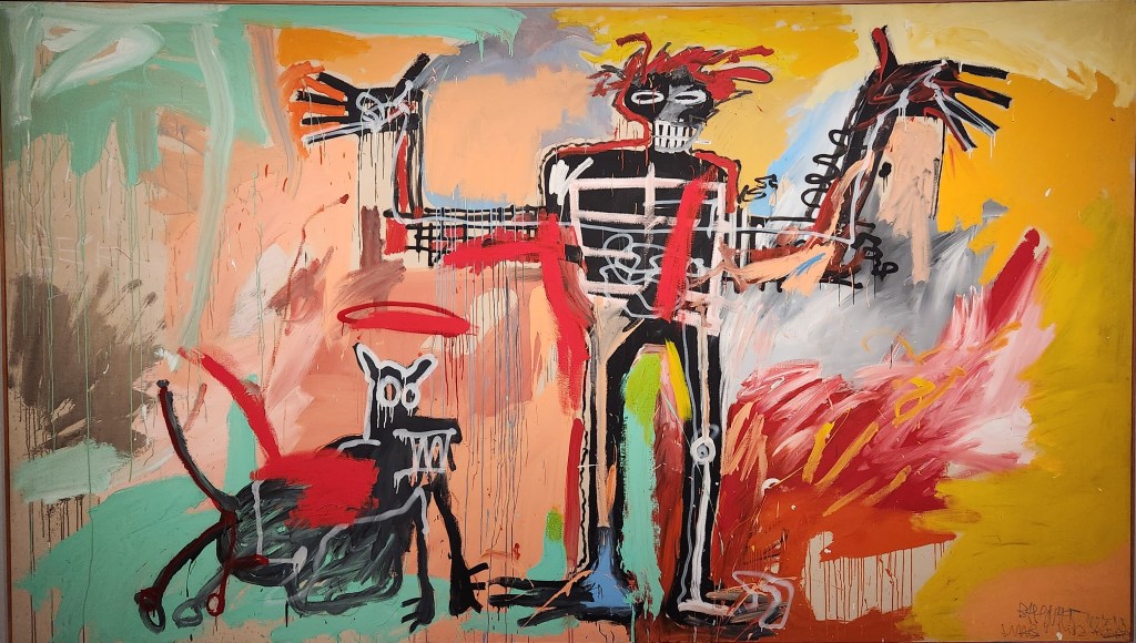 Basquiat X Banksy at the Hirshhorn through October 26. This exhibit features two major paintings by the artists – the first time either artist has been exhibited in the Hirshhorn. Above is Basquiat’s Boy and Dog in a Johnnypump (fire hydrant), 1982.