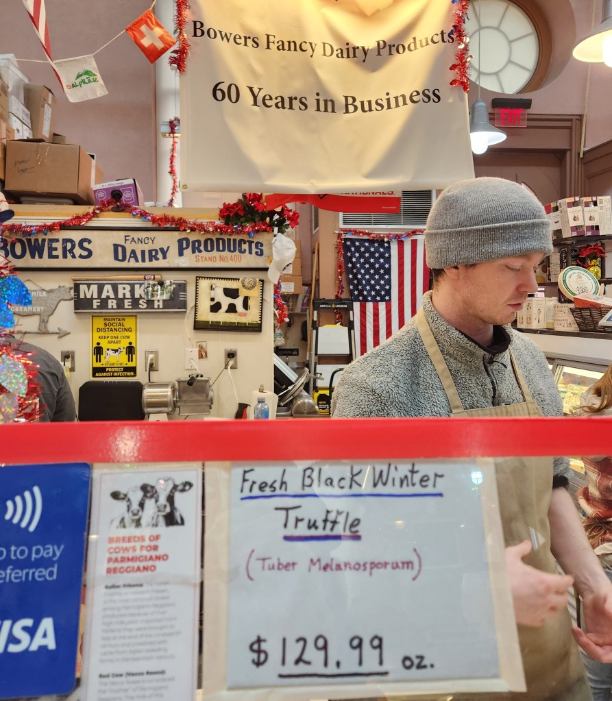 You don’t see this every day – fresh Black Winter Truffles from Spain, vacuum-packed and available at Eastern Market’s Bowers Fancy Dairy Products.