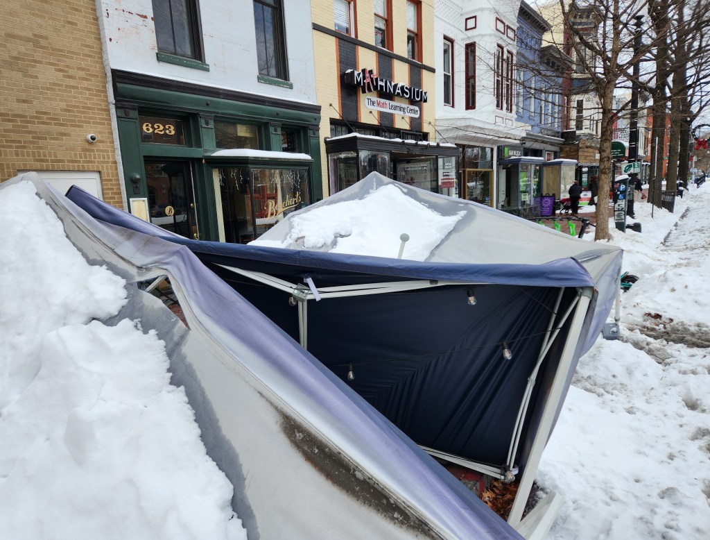 Snow storm collapses Pennsylvania Avenue Streetery – last week, this was the scene on the 600 block of Pennsylvania Avenue – spelling the perhaps temporary end of this streetery.