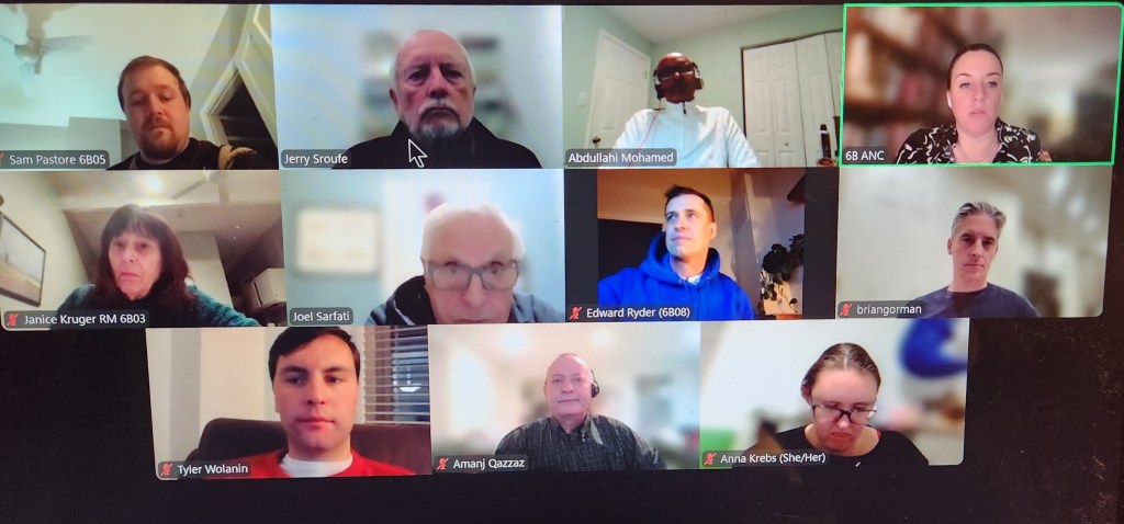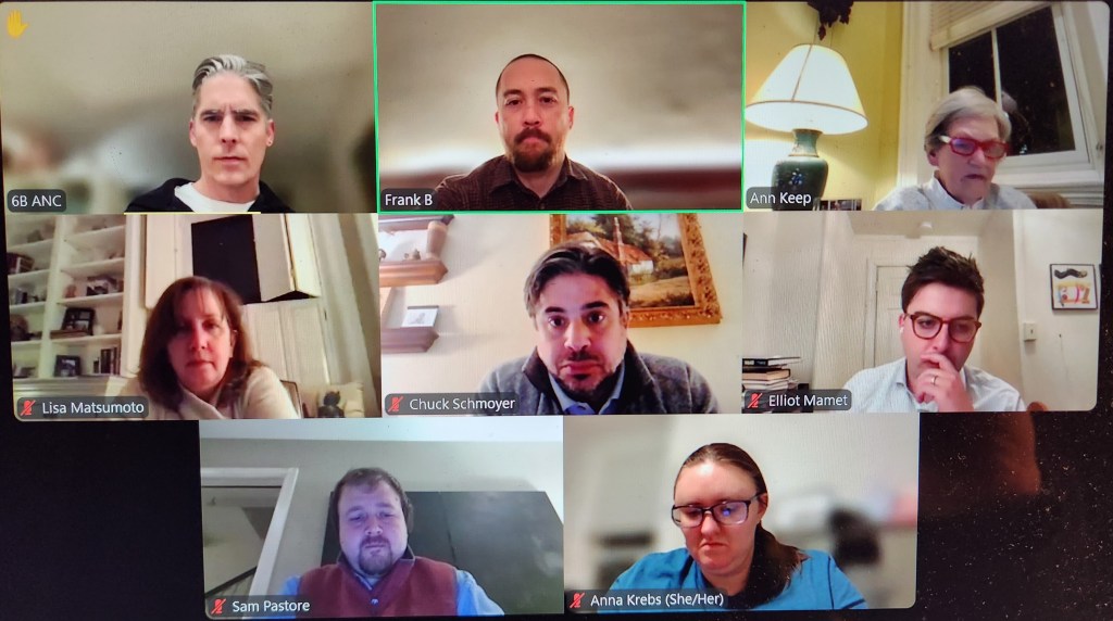 ANC6D met January 13 and elected new officers: Chair, Gottlieb Simon (upper right); Vice Chair, Bruce Levine (middle far left); Secretary, Rhonda Hamilton(bottom left); and Treasurer, Fredrica “Rikki” Kramer (upper far left).