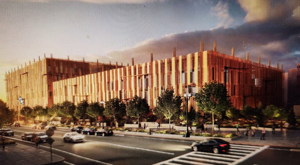 Last Thursday night, Meridith Moldenhauer, Zoning Counsel for the DC Correctional Treatment Facility Project, presented current renderings of the new jail being built in Hill East to ANC6B’s Planning and Zoning Committee, chaired by Commissioner Vince Mareino. The new jail is in Ward 7, but Ward Six and ANC6B border Ward 7 so it has a say in how the new jail will affect the Ward 6 community. The correctional campus is located at 1900 Massachusetts Avenue, SE.