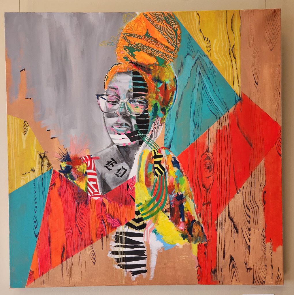 First Place, Jessica Maria Hopkins. Colors of My Reflection. Acrylic, Acrylic pen, ball point pen on canvas.