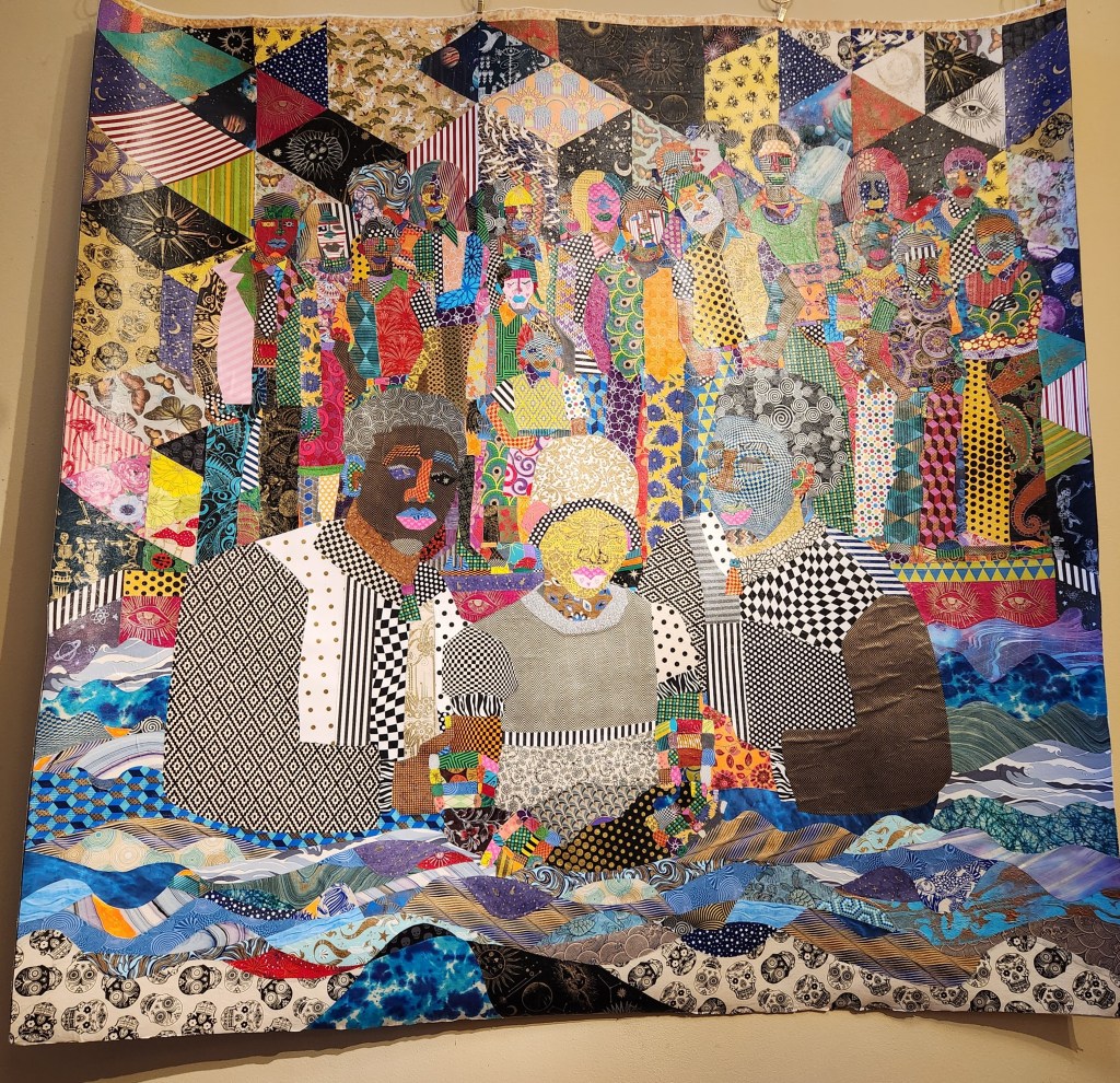 Second Place # 1, James Terrell, The Last Supper. Collage, Acrylic Paint, Paper and Fabric.