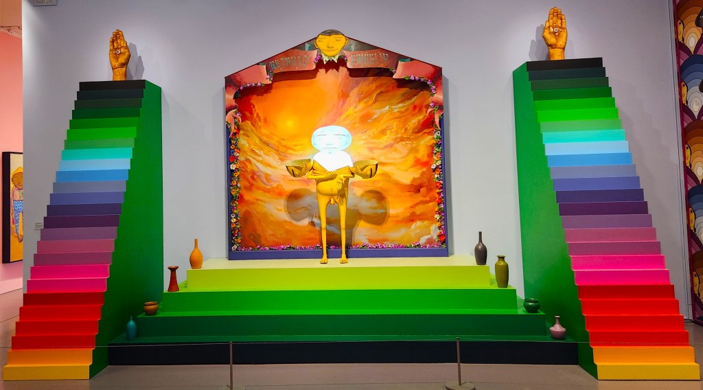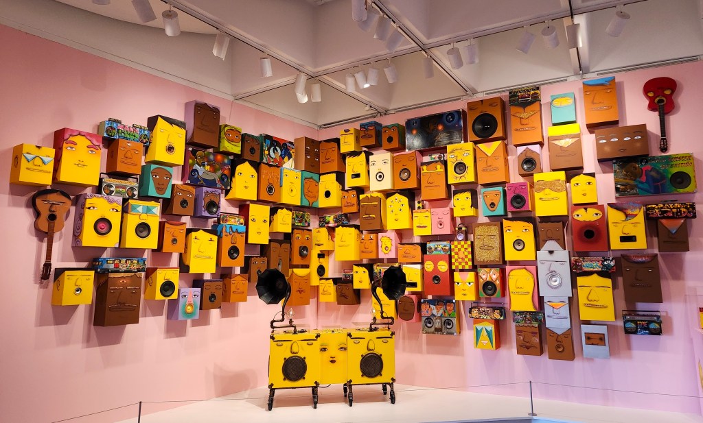 Osgemeos – The Endless Story – is an on-going exhibit on the entire 3rd floor of the Hirshhorn Museum which continues through August 3. Osgemeos means “the twins” in Portuguese and refers to two twin brothers, Gustavo and Otavio Pandolfo, who collaborate making art. The exhibit – their most ambitious ever –is an astonishing explosion of creativity. Its 1,000 or so pieces, span decades and stem from their lives and work growing up in Sao Paulo, Brazil.