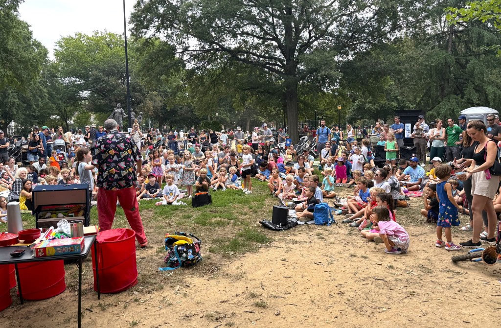 On Sunday, August 24, the Friends of Lincoln Park (FOLP) hosted a community event in the park featuring the Abracadabra Alex Magic Show. FOLP is a 501(c)(3) charitable organization that works to put on events for the community and invest in the upkeep of the park. They conduct their activities in partnership with the National Park Service which manages Lincoln Park. You can join the listserv here: https://lincolnparkdc.net/about/ Bert Wyman, representing FOLP said the show drew several hundred – the biggest turnout for a FOLP event yet. Photo credit: Bert Wyman