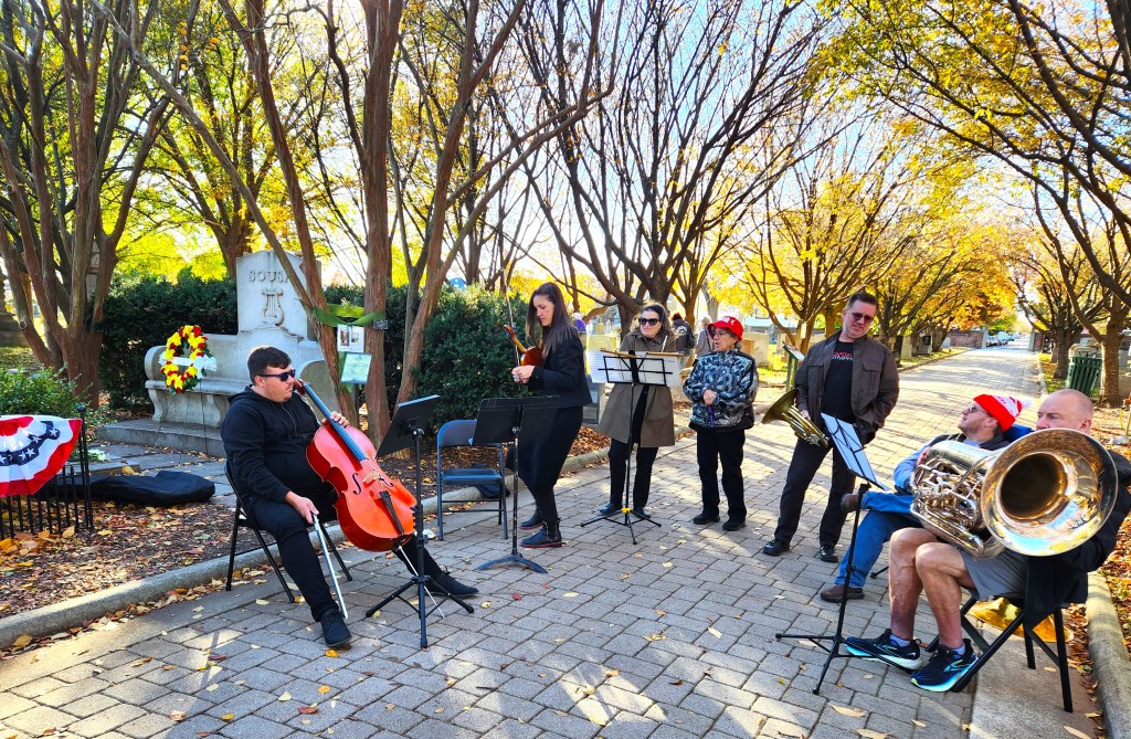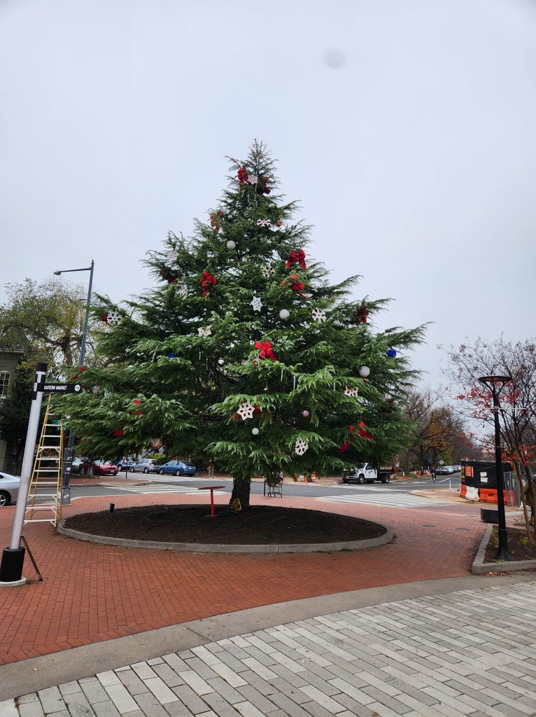 The annual lighting ceremony features the evergreen tree “Sonny” in the SW Quadrant of Eastern Market Metro Plaza, honoring the late George Didden III for his many contributions to the Capitol Hill community. Members of the Didden family were on hand to flip the switch.