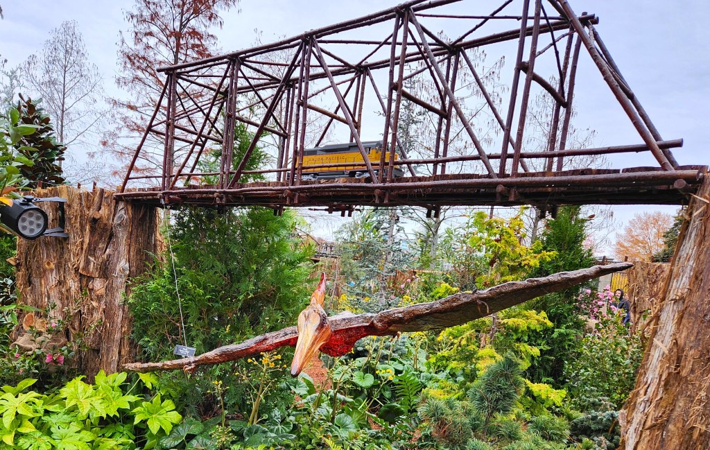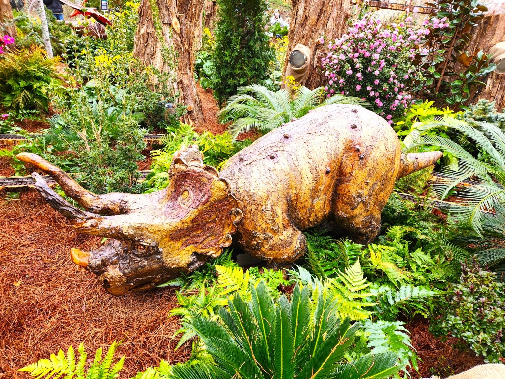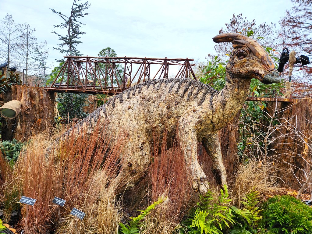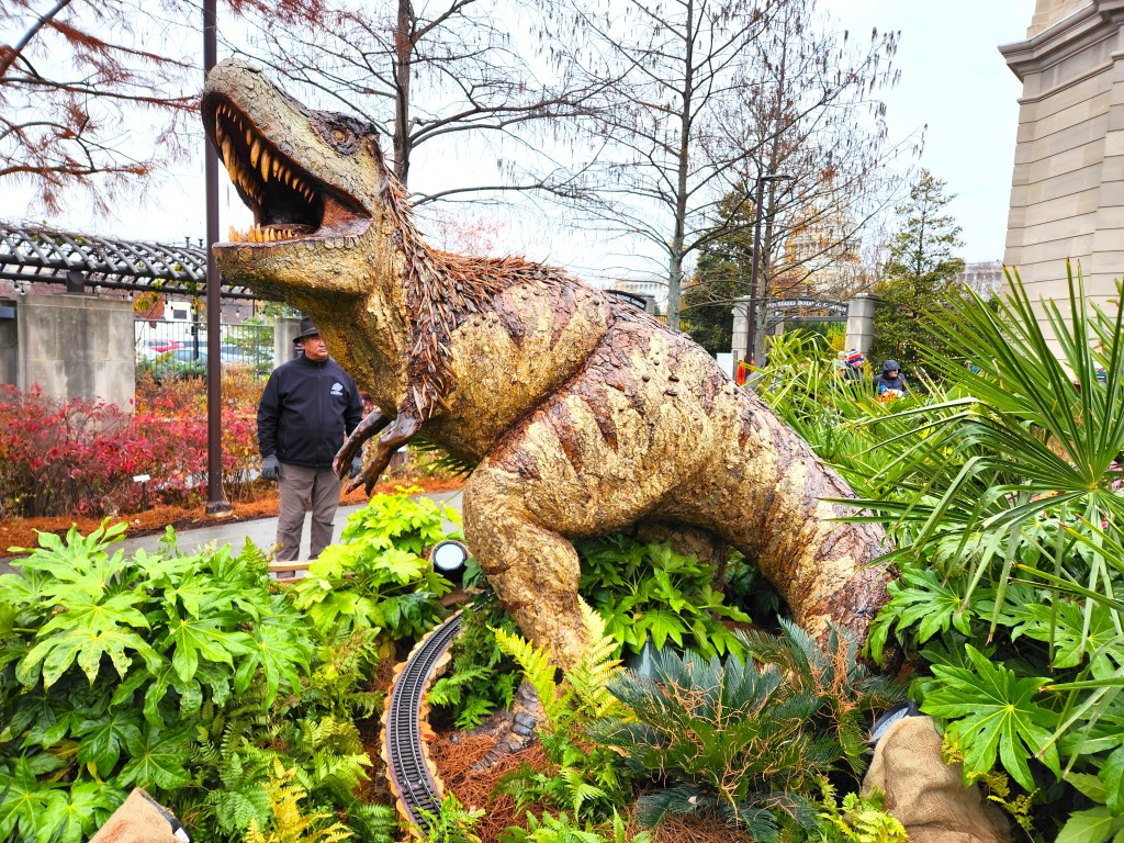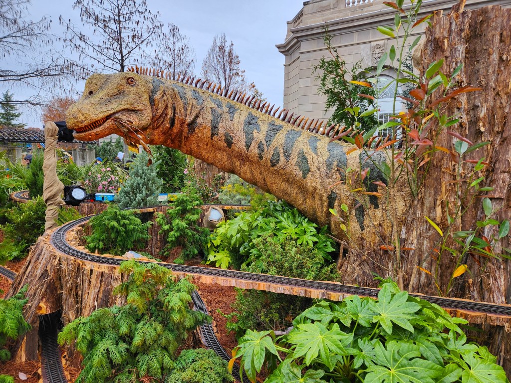 The theme of this year’s US Botanic Garden Holiday Display is “Dino-mite” featuring large-but-mostly-not-life-size models of dinosaurs which ruled during the Cretaceous Period from 145 million years ago to 66 million years ago. As with the displays of models of Washington landmarks inside the conservatory, the models are all made from plant parts. Some of the animals depicted in the outdoor landscape which also features a G-gauge model train display are shown below. The exhibit is free and runs through January 4th (closed Christmas Day). For more, go here: https://www.usbg.gov/holiday