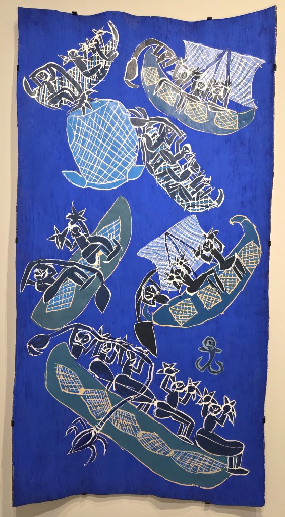 Bark painting showing interaction of Australian natives with global trade partners prior to arrival of the British in the 18th Century.