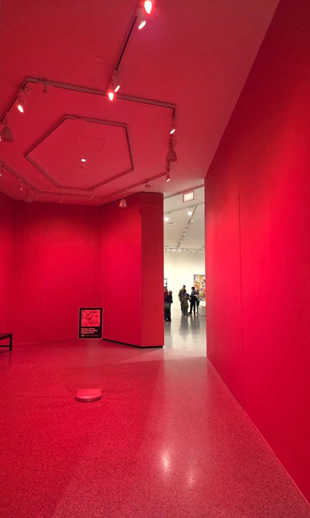 “Burdi, Burdi” (Fire, Fire). A red space where the performance artist sings in the native language of the threats of colonization.
