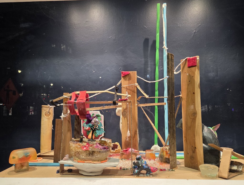 Here’s Triple Candies’ January exhibit in the space in front of the former Li’l Pub at 655 Pennsylvania Avenue, SE. Triple Candies is a research-oriented curatorial agency run by art historian co-founders Shelly Bancroft and Peter Nesbett. Their purpose is to create alternative exhibition methods making that the object of critical focus rather than what is displayed (which for the most part does not include original artworks).