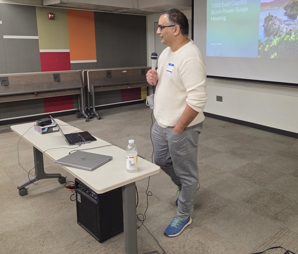 Pepco engineer Stephen Park gave a PowerPoint presentation and talked about actions taken to remedy power outages, detailing what Pepco has done and intends to do, but was less forthcoming on the power surges, saying  there were many causes and he couldn’t tell the source of the surge which residents say cause the damage.