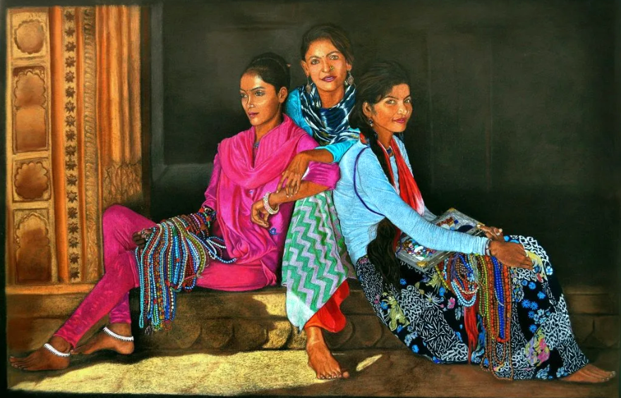 Hill Center Galleries 2026 Regional Juried Show. Second Place. Lakshmikant Gupta “Three Sisters” 2023, Color pencil on black paper. Photo: Hill Center.