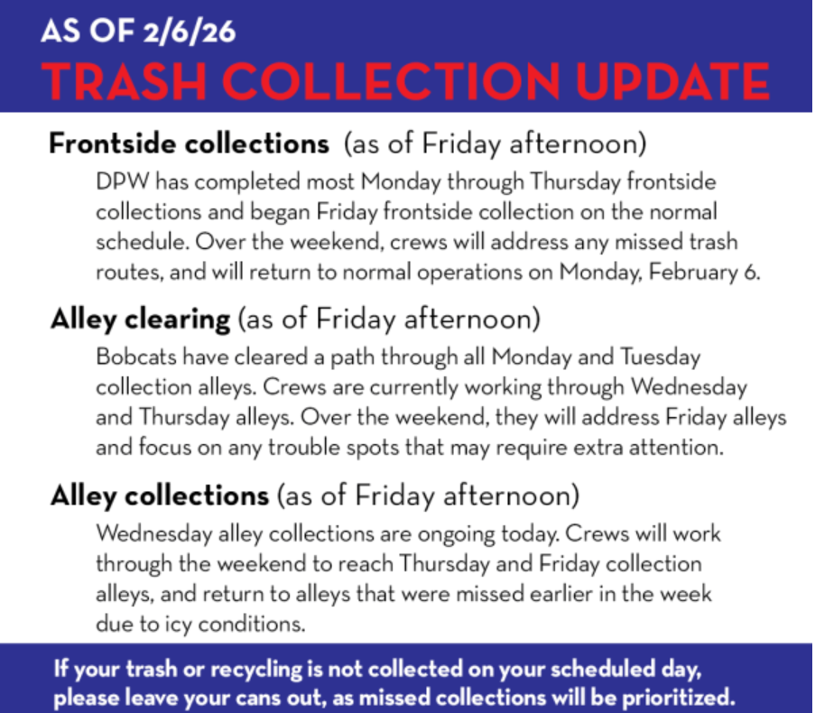 Trash Update: For more go here: https://dpw.dc.gov/page/trash-and-recycling-collection-status