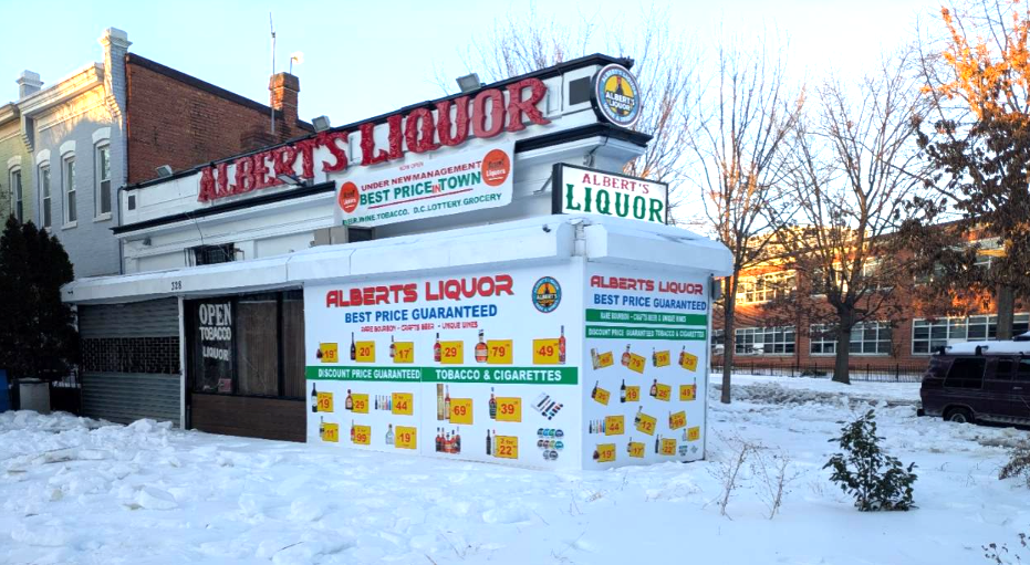 Neighbors are complaining that Albert’s Liquor at 328 Kentucky Avenue, kitty-corner from Safeway, is in violation of DC statutes regulating the signage and prohibitions on illuminated advertising after hours. Last Tuesday night, ANC6B’s Planning and Zoning Committee voted unanimously to support a motion that the full ANC send a complaint to the DC Alcohol Beverage and Cannabis Administration. Final action on that will come up in next Tuesday night’s meeting of the ANC. Photo: ANC6B
