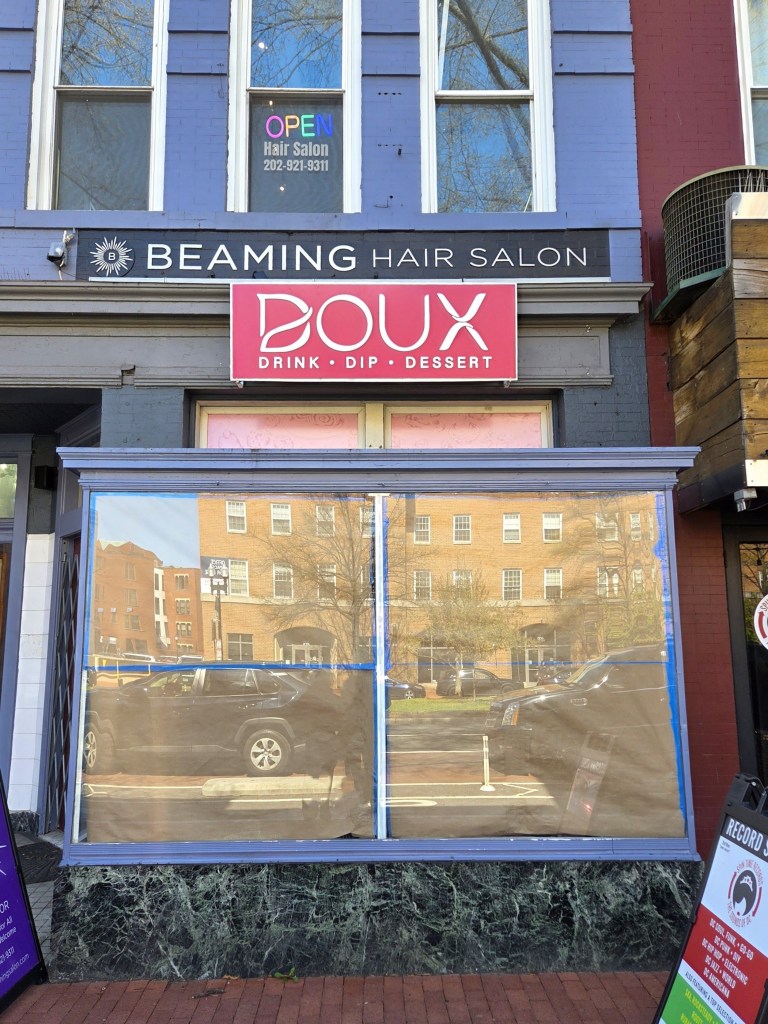 Doux, (Fr. for pleasant tastes) is coming to 615 Pennsylvania Avenue SE in the space formerly occupied by Pasha Castle. Signage says offerings include “Drink – Dip – Dessert.” Reportedly, the shop will specialize in Belgian chocolate and feature Mediterranean desserts. One less empty store front occupied by locally owned retail is a welcome addition to the commercial corridor.