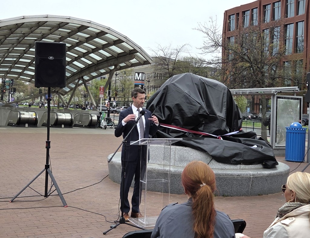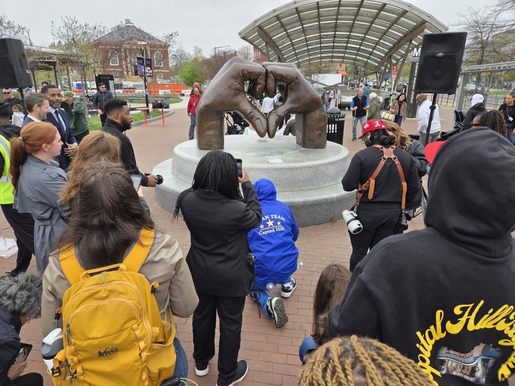 Friday afternoon also saw the unveiling of “Loveful Hands” on Eastern Market Metro Plaza. CM Charles Allen who got funding to redesign the Plaza, said, “One of the things that we wanted was to make sure that public art is a part of our public parks and I’m really grateful for the group of neighbors that came together … Eastern Market Main Street, Barracks Row Main Street. EMCAC, our Advisory Neighborhood Commission, Nicky Cymrot, and Donna Sheeder – who unfortunately is no longer with us – all really worked hard and came together to think about what we wanted this space to look like, and decided that art is going to be at the center.”