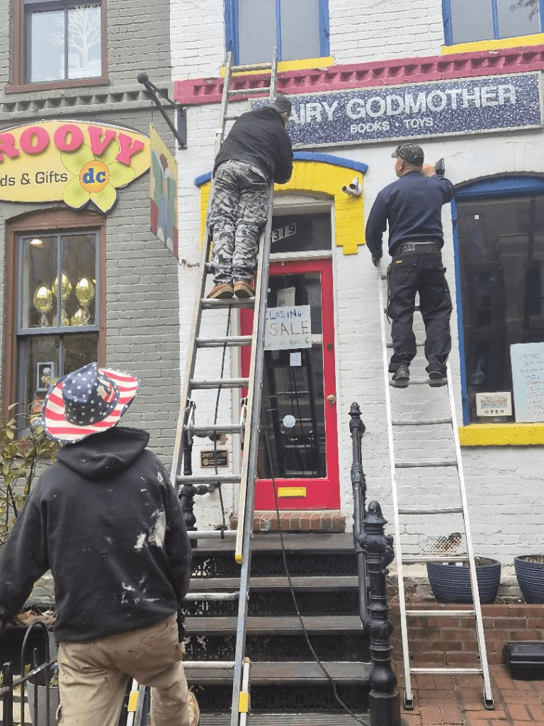 Here’s a photo from Friday as Fairy Godmother’s signage comes down. Photo credit: Maggie Hall.