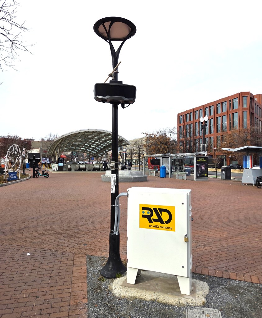 A new surveillance camera has been installed on Eastern Market Metro Plaza by the Capitol Hill Business Improvement District (BID). The device was funded by a grant from the Office of the Deputy Mayor for Public Safety. The 360 degree camera is registered with MPD’s Camera Connect program which can provide real-time coverage to MPD’s Real-Time Crime Center (RTCC).