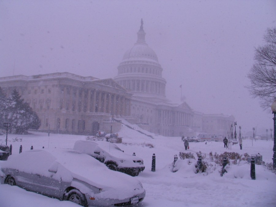 U.S. Capitol in afternoon snowstorm