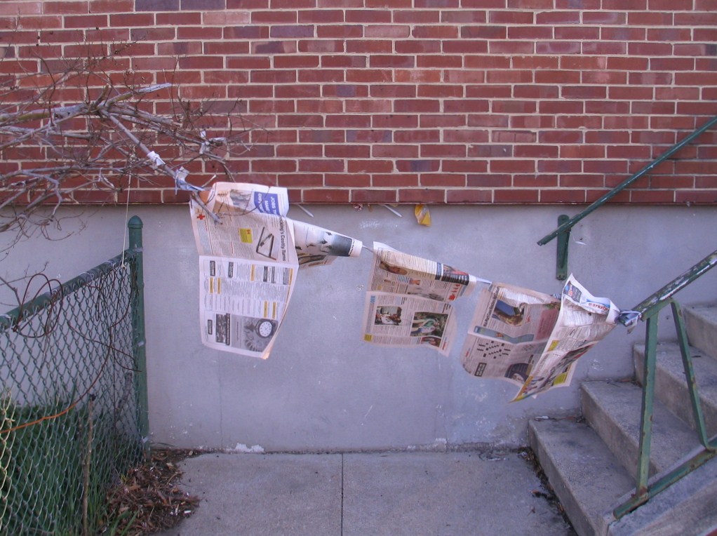 A homeless person – Jack – who frequents the steps of the old Hine Jr. High which is destined to become high end mixed use assembles constructions from found materials for reasons of his own.