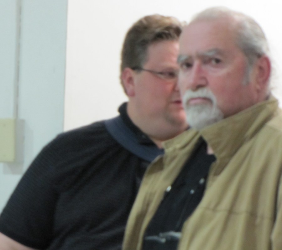 Jim Myers, long time East Hill activist and founder of newhilleastlistserve at community meeting on redistricting. Behind is Jared Critchfeld, former Chair of ANC6B