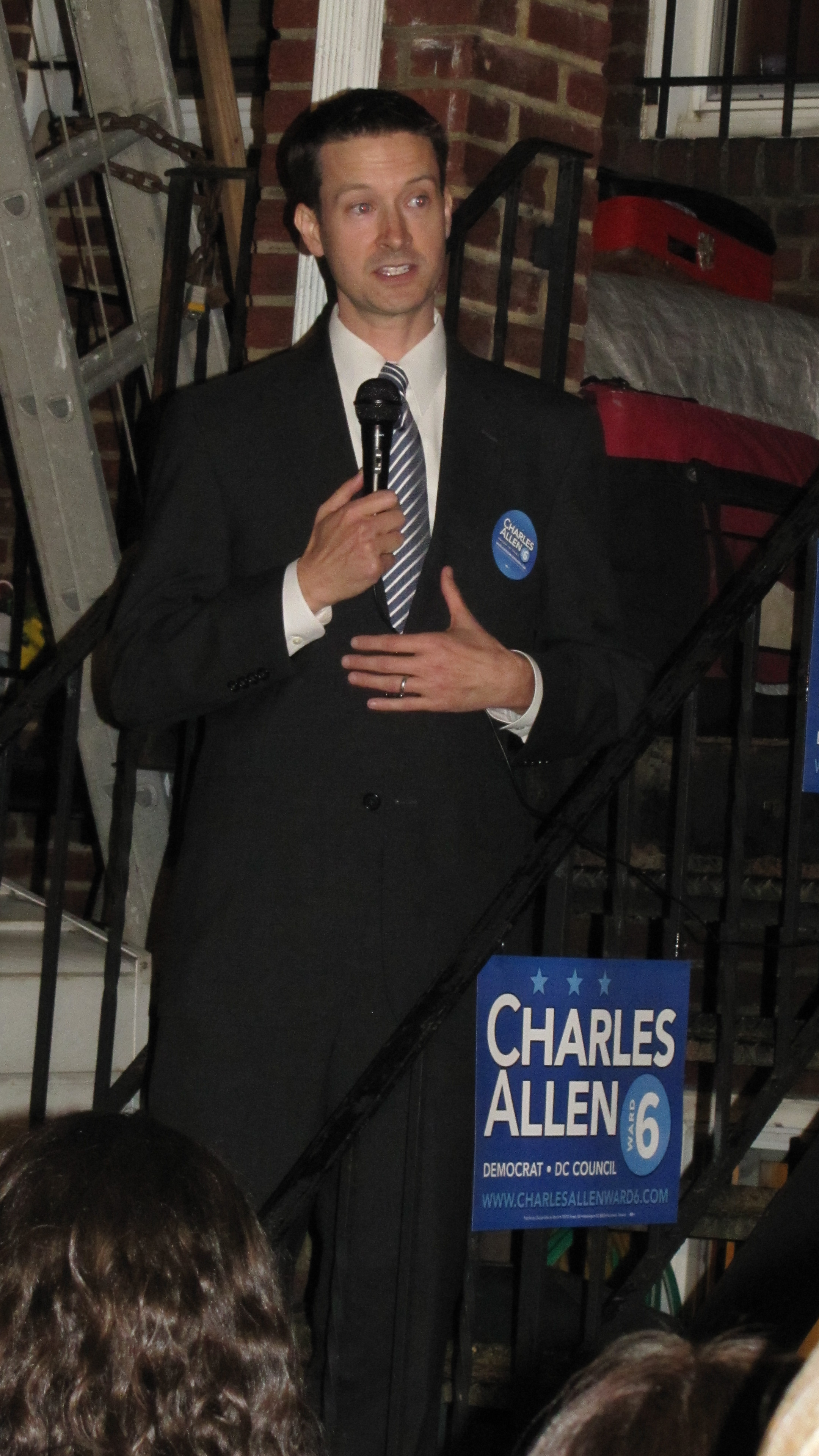 Ward Six Council candidates Charles Allen and Darrel Thompson met at the Hill Center Friday night in a 90 minute forum attended by about 130 Capitol Hill residents. The audience seemed weighted in favor of Allen with current Councilmember Tommy Wells, former Councilmember Sharon Ambrose, and half a dozen ANC6A and 6B commissioners in attendance. Allen’s finance co-chairs Steve and Nicky Cymrot, founders of the Capitol Hill Foundation and the Hill Center, sat in the front row and wore Allen stickers, as did Ambrose and several ANC commissioners.